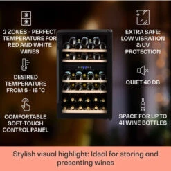 Klarstein Barossa 40 Duo Wine Fridge 2 Zones 41 Bottles Glass Door Touch LED