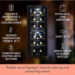Klarstein Barolo 15 Uno Wine Fridge 48 Ltr 15 Bottles 11-18°C SingleZone