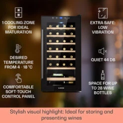 Klarstein Barossa 29 Uno Wine Refrigerator 1 Zone 88 Litres / 28 Bottles Touch Display