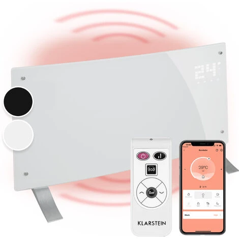 With two heat settings, the 2000 watt Klarstein heaterheats your rooms up to 45 ° C. The desired temperature is always maintained via a thermostat. The ECO mode reduces energy consumption to a minimum: this is good for the environment and your wallet. In Timing mode, the convection heater switches on and off to the minute according to the settings made. The glass panel of the Klarstein Bornholm Single Smart is splash-proof and therefore also suitable for use in damp rooms. The curved shape gives the Bornholm Curved Smart a particularly elegant appearance, and at the same time ensures improved heat distribution in the room.