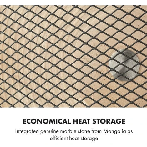 The Klarstein HeatPal Marble Blackline infrared heater is a practical, mobile heat source and a highly efficient heat storage device at the same time. Even after operation, your room is reheated without any power consumption: perfect for cold winter days! Thanks to the innovative infrared heat radiation, you also have the feeling of being caressed by warm rays of sunshine. The sophisticated IR Comfort Heat technology does not heat the air, but rather the people and objects in the room in a targeted and immediate manner. What’s more, you can set up the practical device anywhere and move it around thanks to the carrying handle.