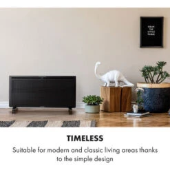 The 2000 watt heating element can be continuously adjusted between 5 and 45 ° C and can therefore be optimally adapted to individual heating requirements. The 83 x 40 cm heating panel can be attached directly to the wall or used as a mobile standing device. Two stable feet, each with two rollers, and a 150 cm long cable ensure the necessary mobility. With 2000 watts of power, it heats rooms up to 40 m² in size without any problems. A weekly timer enables the heating times to be programmed as required for each day of the week – so a pleasantly warm room is always guaranteed. In addition, the OpenWindow Detection ensures automatic shutdown when the window is open. All settings can be made directly on the heater’s control panel. Thanks to its clear LED display, you always have an overview of the current settings. An adjustable child safety device, which prevents accidental switching or switching on, as well as an integrated overheating protection provide additional safety. The Klarstein Hot Spot Slimcurve Double Wave heater not only shines in terms of technology, it also impresses with its stylish design: the rounded edges and shiny surface exude cosy warmth as well as a touch of luxury.