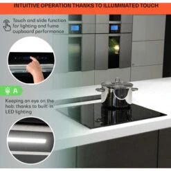A STRONG FAN THAT NEVER DISTURBS: With a powerful 576m³/h airflow rate and 10 fan speeds, our 60cm cooker hood reduces odours and filters fumes for better air quality. It does this while operating quietly so you can cook alongside cooking videos.