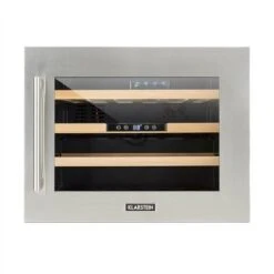 Klarstein Vinsider Built-in Wine Cooler, Single Zone Bar Fridge, Wine Coolers for Wine Bottles, Touch Pad, 5-22°C Range, 57 Litres, 24 BottlesTaking wine out of the restaurant and into the home, this 24 bottle drinks fridge allows you to build and store an exquisite collection of wine. Wine fridges are specifically built to protect a priceless collection from damage caused by incorrect storage temperatures, humidity, light, vibrations or poor air quality. This built-in wine fridge neatly fits into any home, tasting room, kitchen or indoor/outdoor bar area, giving quick access to your best wines chilled at their ideal temperature. White, Red and Rosé Wine StorageWhether you drink it for pleasure, health or to complement a rich meal, there’s a lot to love about wine. No matter your preference, this single zone mini fridge gives you full control of the storage climate. The cooling zone can be set from 5-22°C so it’s ideal for red, white, rosé and prosecco, chilling them for when it’s time to uncork and serve. There’s even enough space for champagne for a celebration.Elegant Design, Intuitive OperationAs much as we love the “rack ’em and stack ’em” approach to wine collecting, it’s not suitable for those who live in humid environments, nor is it an elegant way to store a collection of vintages. This wine cooler fridge lets you control the environment for longevity while displaying your wine collection in a refined, beautiful manner. The wine and beer cooler has a stainless steel frame and uses double-walled panoramic glass to give a constant view of your collection. This drinks cooler is controlled with a touch-sensitive panel that lets you easily set the temperature. Finally, UV protection minimises the damage from natural light. Product FeaturesSingle zone wine fridge fits 24 bottlesVibration free storageThree removable wooden shelvesLCD screen displays temperatureDimensions: 54 x 44 x 54 cm