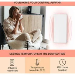 THE PERFECT TEMPERATURE: The integrated thermostat lets you set the most comfortable temperature. The infrared heater can even figure out the most efficient way to keep a room at the same temperature to save energy.